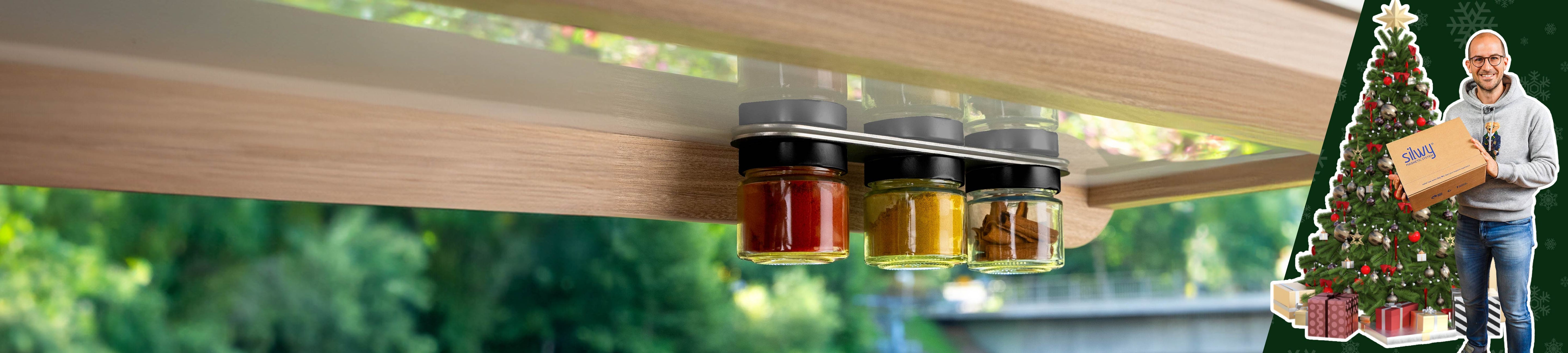 Magnetic deli jars BLACK & CLASSY 125 ml including BLACK ledge