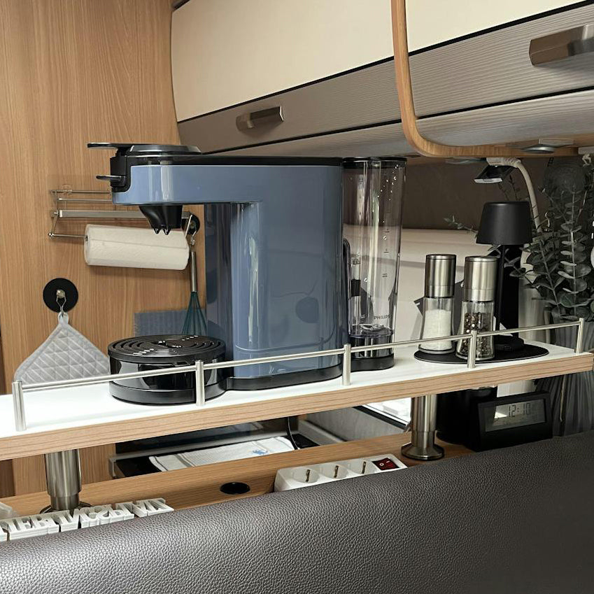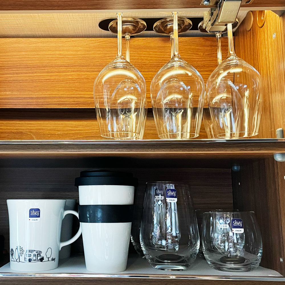 Mit silwy® verwandelst du dein mobiles Zuhause – ob Wohnmobil, Van oder Boot – in einen Ort zum Wohlfühlen. Gläser, Tassen und Teller bleiben sicher an ihrem Platz – selbst während der Fahrt.