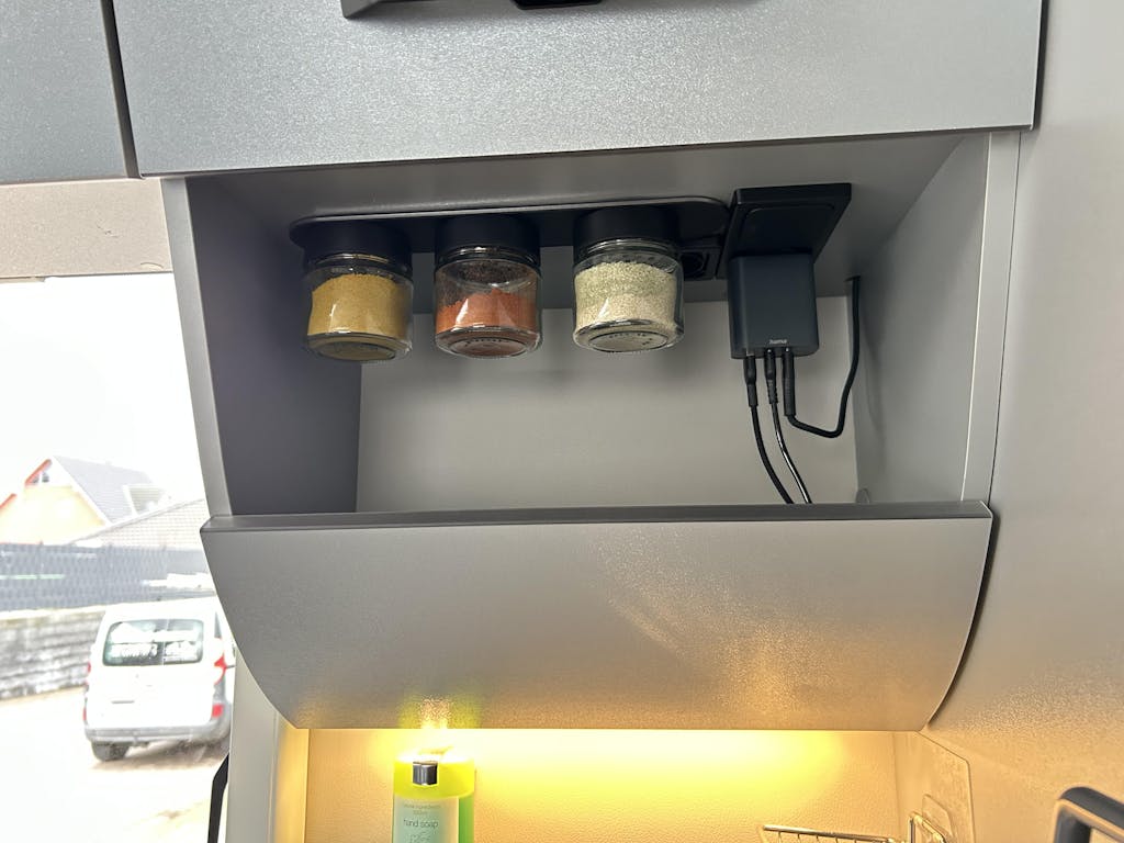 Durch den dicken Metall-Kern im Inneren der Leiste ist die Zugkraft stark genug, um die Gläser auch während der Fahrt kopfüber hängen zu lassen.