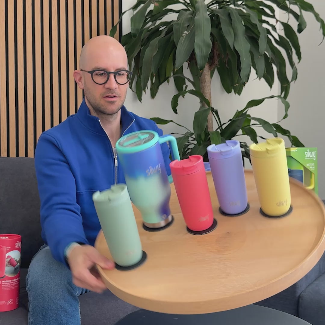 El termo magnético fue diseñado para quienes quieren más: más capacidad, más comodidad y máxima flexibilidad en el día a día. Con una capacidad de 900 ml, el termo te acompaña de forma fiable durante largas jornadas, ya sea en la oficina, haciendo deporte, en el coche o de viaje. El asa ergonómica con recubrimiento de goma garantiza un transporte cómodo, mientras que la pajilla integrada permite beber con facilidad.